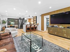 An open floor plan anchors the home, highlighted by smooth-coat walls + ceilings, updated windows, wide-plank flooring, and recessed lighting. The living room centers around a striking black brick fireplace and custom wood-slat media wall (TVs included). Large sliding doors blur the line between indoors and out, opening to an oversized covered patio your new lounge, dining deck, and year-round hangout. The patio/side yard adds extra space for grilling, dinning and storage. The grilling station and dedicated lighting will be included.