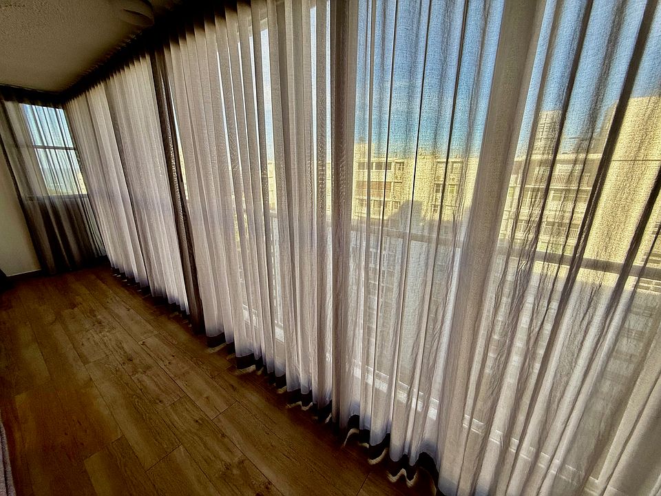 Middle Floor Enjoy this spacious corner unit just painted unfurnished apartment with 3 bedrooms, walking closet in the master bedroom , 2 full bathrooms apartment, open kitchen fully equipped, laundry area with washer and dryer, open space with spacious living- dinning area, exterior balcony facing hotel and beach views. 4a/c units, 2 pkg. spaces (one covered and other one as a first come first serve).