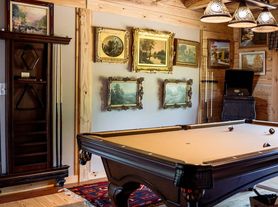 Majestic windowsPrivate log homeLarge living spaceOpen floor planFully stocked game roomFloor-to-ceiling fireplaceVaulted ceiling