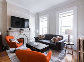 The three-floor residence is modern, bright and spacious. On the parlor level, an open-concept living space with rich hardwood floors and a tasteful marble fireplace mantle flows into the dining area and new fully-equipped kitchen for seamless entertaining. The chef's kitchen, which can be closed off with pocket doors, is finely designed with sleek charcoal-toned custom millwork, Caesarstone countertops and breakfast bar, brushed nickel hardware, and Kitchen Aid stainless steel appliances.