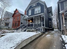 Apartment has a fully renovated kitchen with new cabinets, countertops, and flooring. Unit also has been freshly painted with updated fixtures, original hardwood floors, beautiful pocket doors, 2 ornate fireplaces, and 10 foot ceilings. Washer/Dryer in the laundry room. Both bedrooms have massive, walk-in closets for ample storage. Great sized covered front porch.
