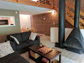 Apartment does not come furnished. Open loft area functions as optional office space or third bedroom area. Washer and dryer are in-unit. Kitchen includes a large dishwasher, stove, microwave, and large refrigerator w/ freezer. Central air provides strong cooling and heat as the seasons change.