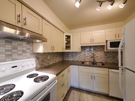 Laguna is a quiet, well-maintained gated community surrounded by mature trees and shrubs. This spacious 977sf garden-level unit offers 2 bedrooms and 2 bathrooms with laminate floors in most areas and a massive 465sf paved patio bordered by planters. The rectangular living room features a gas fireplace, ceiling light, and a large window facing the patio. The dining area has a classy chandelier, while the kitchen offers three rows of white cabinets and a pass-through window. The primary bedroom fits a king-size bed, overlooks the patio, and includes a walk-in closet with mirrored doors plus a 4-piece ensuite. The second bedroom also overlooks the patio, with another 4-piece bathroom. Rent includes one parking stall and a hanging locker.