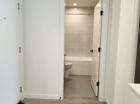 Modern radiant-heated bathroom with double-sink, tub and shower