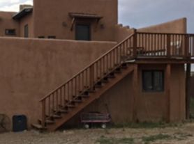 In the center of the little town of Cerrillos. The studio apartment is completely furnished, attached to an old Hacienda adobe home. Queen size bed.