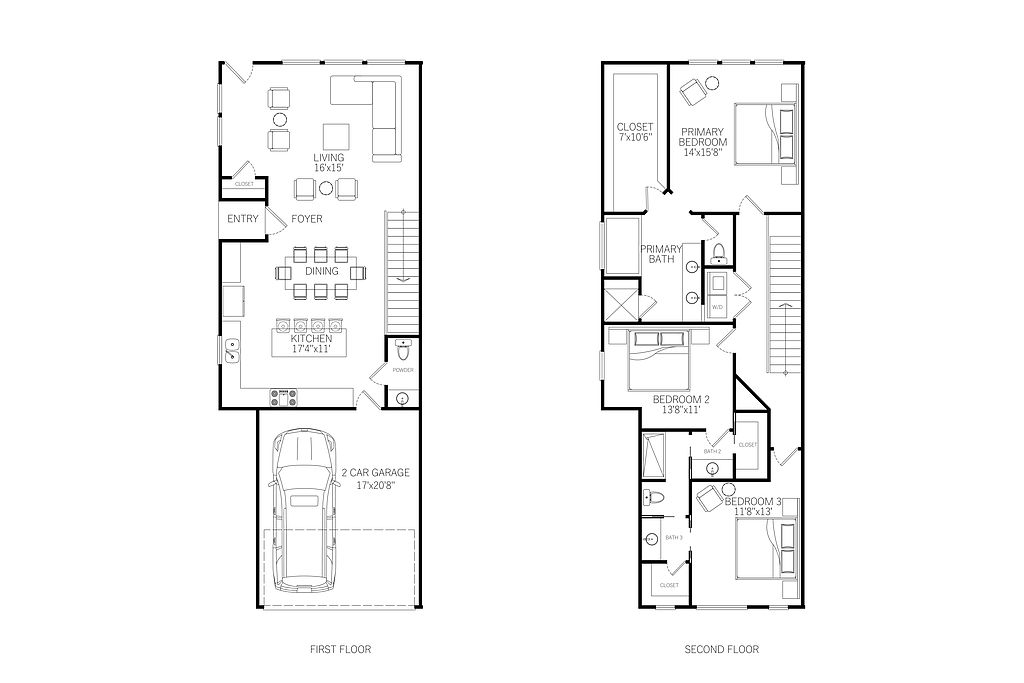 - Garage: Attached two-car garages