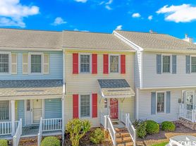 Available immediately for rent, this 2 bedroom 1.5 bathroom two-story townhome in the Canterbury Village community has been freshly repainted. Conveniently located in the center of Myrtle Beach, across from Broadway at the Beach and a few short minutes to the Ocean. Hardwood floors throughout the first level. You'll find the dining room and kitchen with a breakfast bar. French doors in the living room lead to the private fenced back yard area. Upstairs are two bedrooms with carpet flooring, bathroom with two separate vanities and toilet room. One bedroom has vaulted ceilings and a skylight. Unit comes with 2 assigned parking spaces. Renters will have access to the community pool, subject to all community rules. Some images have been virtually staged for reference. This unit is rented unfurnished and the rental price reflects a 12-month lease.