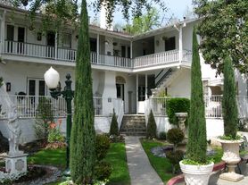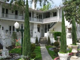 Welcome to this Spacious and Charming Property with a Private Patio. The unit is filled with character with its elegant arched doorways and double French doors that lead to your own private patio area. Inside, the unit has been freshly painted, quality faux wood blinds, ceiling fan, stainless steel oven, and beautiful hardwood floors. Outside, you'll find a lovely communal garden with a water fountain. On-site laundry facilities, and 1-car garage with remote control access available for additional cost. Save roughly $1,250 with our two weeks free promotion. (Credit given on the second month.)