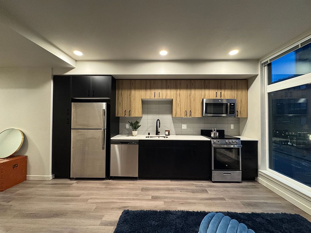 Inside each home, you'll find thoughtful design details including stainless steel appliances, granite countertops, and luxury vinyl plank flooring. Select homes feature private patios or balconies with skyline or Puget Sound views. The community offers conveniences designed for modern life such as a 24-hour fitness center, pet-friendly spaces with a dedicated pet wash station, secure key fob entry, and a welcoming clubroom.