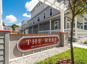 2019 built contemporary townhouse conveniently situated blocks from the University of Florida and the recently established Santa Fe Blount Center. Nestled between the vibrant neighborhoods of Midtown and Downtown Gainesville, and just a stone's throw away from the UF campus, The Reef stands as the ultimate student housing choice! Each room in this townhouse is designed as a generous master suite, complete with its own private bathroom and an expansive walk-in closet. Furnished units available. Includes parking and GRU fiber optic internet!