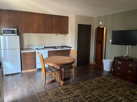 Kitchenette with small electric range and stainless steel sink, Dorm Fridge,