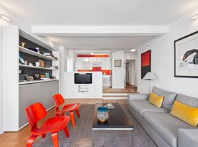 Located in the architecturally distinctive Aristocrat cooperative, Apartment 7A offers comfort, convenience, and classic New York charm in the heart of Midtown Manhattan. This well-designed space features a sizable primary bedroom with built-in shelving and an en-suite full bathroom complete with a tub/shower, sink, and toilet. A second half-bath is conveniently located just outside the bedroom, along with a nearby storage closet.The kitchen includes a dishwasher, full-sized refrigerator, microwave, oven, stove, and generous cabinet space. The bright living area boasts two closetsone in-wall and one near the entranceoffering excellent storage options. The Aristocrat offers full-service living with a 24-hour doorman, live-in superintendent, central laundry room, bike storage, and an adjacent parking garage. Pets are not permitted. Set on a tree-lined block between Fifth and Sixth Avenues, this prime location puts you steps from MoMA, Central Park, Rockefeller Center, Carnegie Hall, and world-class shopping, dining, and transit.