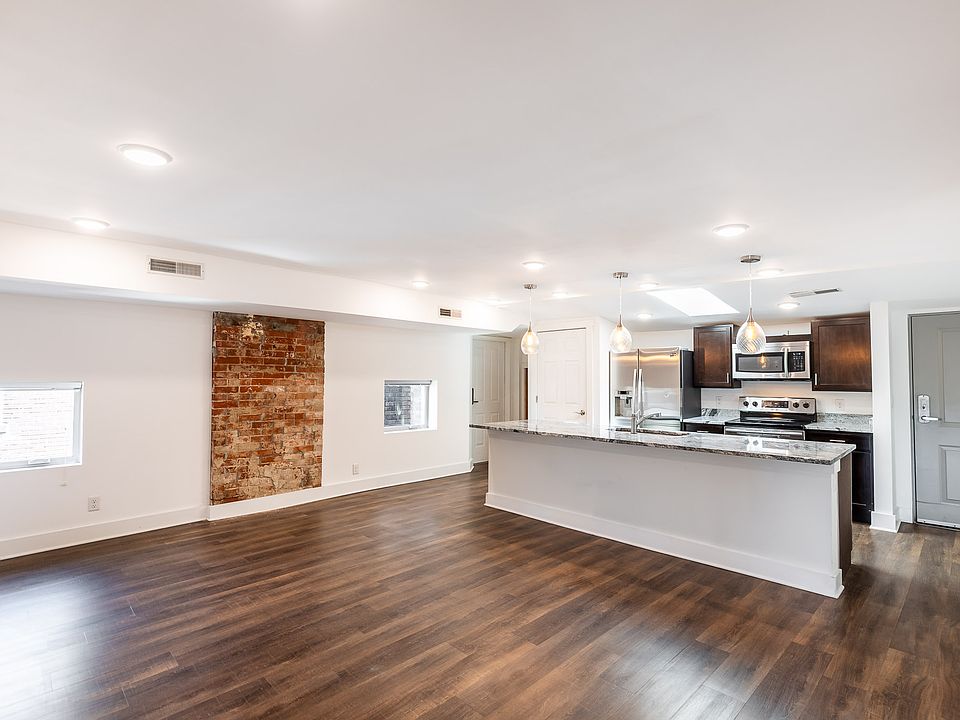 Beautiful fusion of historic architecture with contemporary finishes. This stunning apartment on the 2rd floor is very spacious and offers open concept living at its coolest. Nice views of the area and easy access to this dynamic neighborhoods amenities. High end finishes throughout with granite, luxury vinyl plank flooring, solid wood cabinetry, stainless appliances and in unit laundry. Lighted parking adjoins the building. Pets are welcome with approval and a reasonable fee.