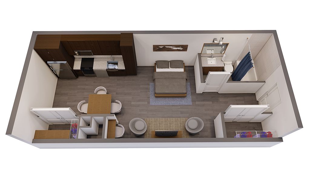University Edge & Dickinson Lofts has a walk score of 88, it's very walkable.