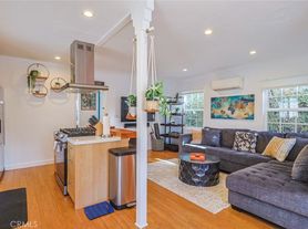 Welcome to this FULLY furnished, incredible light, bright single family 1930's Spanish Bungalow with a fenced private yard. This 1 bed and 1 bath custom designed home features bamboo flooring, USB outlets and shades throughout. Stone tiled full bath with an illuminating mirror over a floating vanity. In-unit laundry room is equipped with washer and dryer along with shelving for storage; additional storage available in the hallway. 2 remote controlled mini split A/C and heating units (main room and bedroom) plus a walk-in closet in the bedroom. In the heart of the house, is a spectacular open kitchen island with stainless steel gas appliances, including a dishwasher and a microwave.
