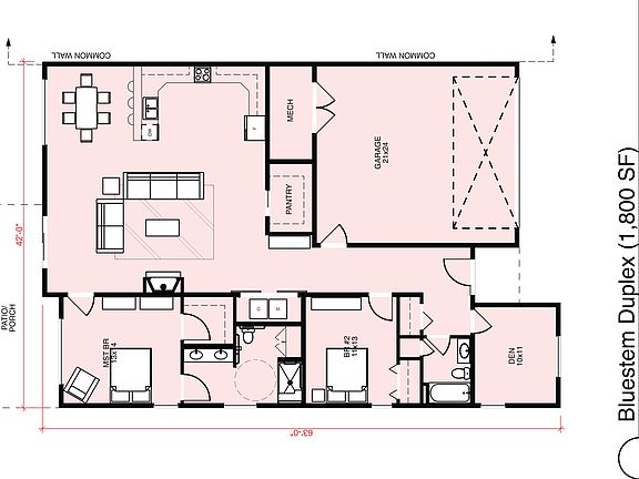 Enjoy the comfortable fit of "rightsizing" without sacrificing on beautiful architectural detail. The openness of the great room sets the tone for the entire floor plan, which is intended to enhance the concept of single-story living. Each plan includes two bedrooms, two baths, a den and outdoor space. The owner's suite features walk-in closet and private bath. The Bluestem provides a quality-rich home with an abundance of well-designed space. Enjoy the subtle luxuries like a pantry and access to the patio from the main living space and master bedroom. Cook and dine comfortably with a large kitchen and dining area and retreat to the private den to work or play. When you are looking for a home that feels grand and modern, look no further than the Bluestem.