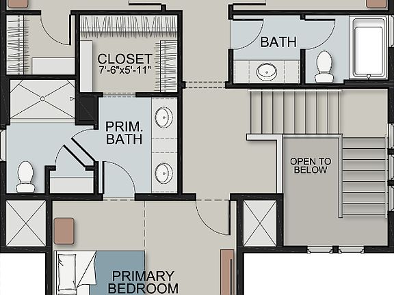 Two additional bedroomsGuest bathDual-sink bathOpen-concept main levelCovered patioWalk-in closetPrivate primary suite