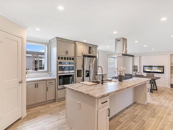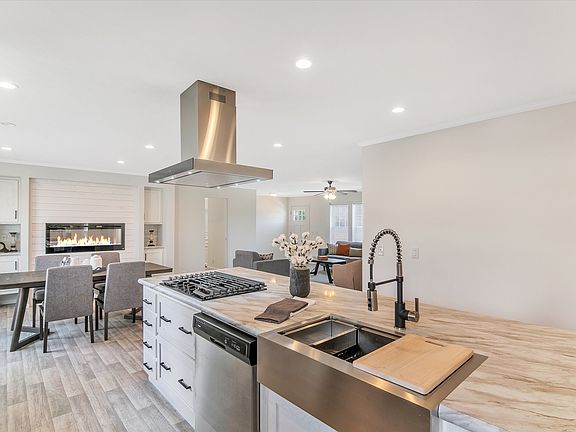 Stunningly beautiful 3 bedroom, 2 bath home featuring many new unique offerings, including contemporary island kitchen with gas burning cooktop and hood vent, upgraded stainless steel appliances with built-in range and microwave, island farm sink, kitchen pantry, dining room fireplace, expansive kitchen area windows, and beautiful master suite. Home also features open living room with built-in floating entertainment center, and separate den/office for remote working, and large built-in covered porch.