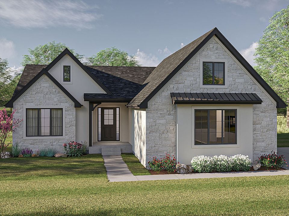 Welcome to the Notting Hill - where timeless charm meets modern comfort. This beautifully designed 4-bedroom, 3.5-bathroom home offers over 3,000 SF of thoughtfully crafted living space, ideal for families or anyone seeking a spacious yet cozy retreat. The open-concept layout features a large family room with vaulted ceilings, seamlessly connected to a stylish kitchen with a generous island and walk-in pantry. A split-bedroom floor plan offers privacy, with a luxurious primary suite featuring a soaking tub, dual vanities, and an oversized walk-in closet. The home also includes a dedicated study, a mudroom with built-ins, and a covered back patio for relaxing evenings. With its elegant stone façade, charming gables, and rich landscaping, this home is the perfect blend of curb appeal and functionality.