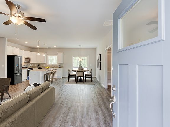 The Walker plan welcomes you from the front foyer entry. You will love the openness of this plan. Large family room. Kitchen features white cabinets, granite countertops, stainless appliances and island with bar stool seating. Large walk in pantry. Breakfast room leads to the outdoor covered patio. Split floor plan. The owner's suite is the perfect combination of relaxation and comfort. Double vanity sinks, tile shower, linen and walk-in closets. Granite countertops and 2" faux wood blinds throughout the home.