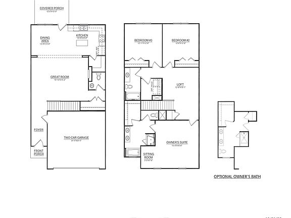 The Ryleigh is priced at $328,900 and it is 2,096 square feet. It is 3 bedrooms and 2 bath. It will have a large great room, dining area, and kitchen island and large pantry. Powder located on first floor. The second floor has all 3 bedrooms, and a loft area. The Owner's suit also has a sitting area.