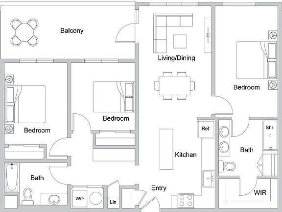 Floor plan: 3 Bedroom Unit, Encore, Grover Beach, CA 93433