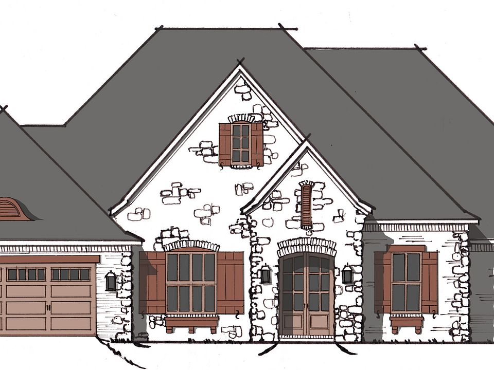 With its soaring, elegant rooflines, the Bordeaux exudes timeless French Country charm, captivating the eye with its intricate stone-detailed entry-a nod to old-world craftsmanship. Beyond the arched 8-foot mahogany doors, a spacious central living area is designed for a seamless flow and effortless entertaining. Custom cabinetry and stone countertops grace the home throughout, reflecting a commitment to artisan quality.