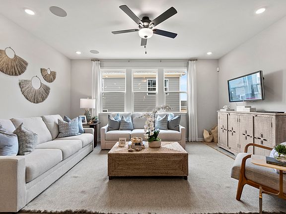 Enter through the foyer to reach the open-concept casual dining and kitchen area. Here, you'll find the inviting great room and casual dining area, with the opportunity to upgrade with an outdoor living space. An additional full bedroom and bathroom are also located downstairs off the garage entry. Upstairs you will find the spacious primary suite, 2 additional bedrooms with a full bath, a laundry room, and a loft with tech area, perfect for a work from home space.