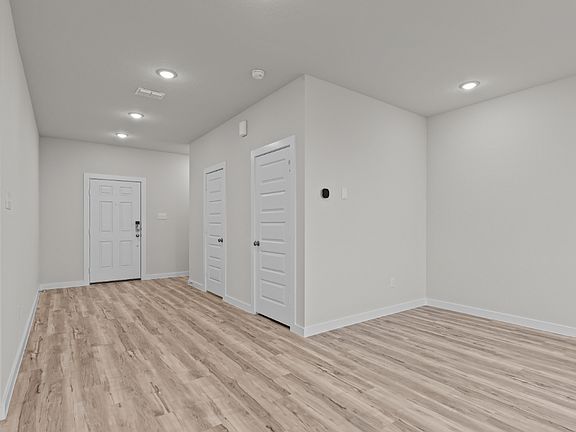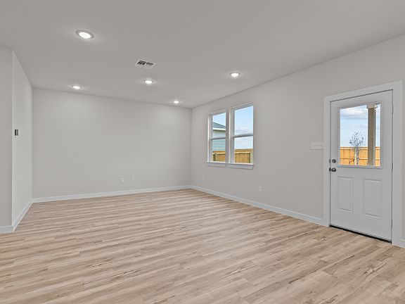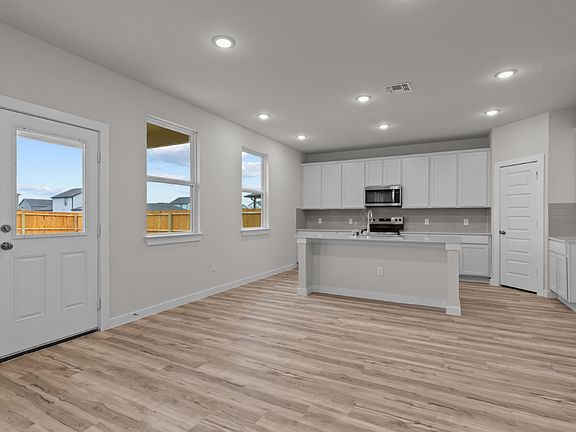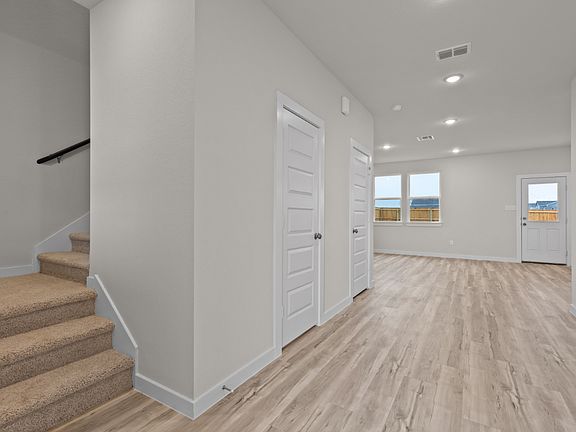 The Wilson at Cinco Lakes is a two-story haven, where the foyer ushers you into an expansive open-concept great room, featuring distinct dining and living areas, along with a kitchen boasting an island and corner pantry. This heart of the home opens to an optional covered patio, complemented by a welcoming front porch. A convenient half bathroom is also located on the first floor. Upstairs, three bedrooms ensure private living quarters. Two bedrooms share a full bathroom, while the spacious primary suite enjoys its own en-suite bathroom, complete with a dual-sink vanity and walk-in closet. A convenient laundry room completes this thoughtfully laid-out home. Options may include: Separate bathtub and shower in primary suite bathroom Optional covered patio Optional extended covered patio