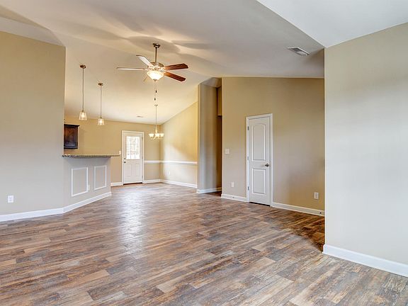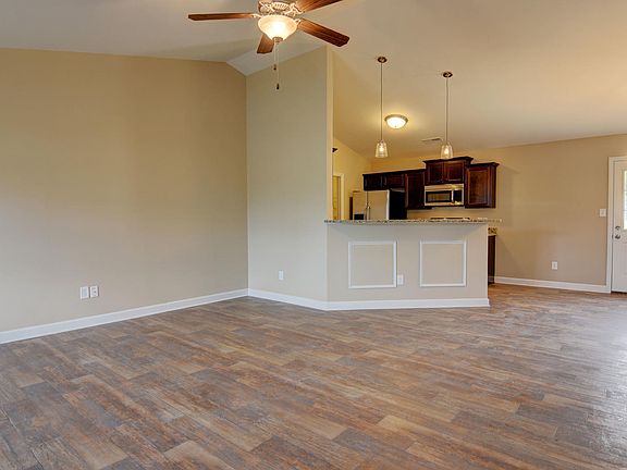 This well-planned single-story home offers a comfortable and functional layout with an inviting open-concept design. The spacious living room flows seamlessly into the dining area and kitchen, creating a central gathering space ideal for everyday living and entertaining. The kitchen features a pantry, ample counter space, and convenient access to the laundry room, which is tucked just off the garage entry for added practicality. A covered front porch welcomes you home, while a rear patio extends the living space outdoors.