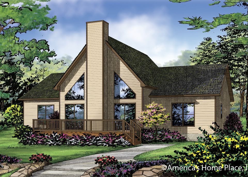 This traditional three bedroom ranch style home would be perfect in the mountains. Sit back and enjoy the scenery through the glass viewing wall or step out on the deck for a closer view. The master bedroom is complete with his and her walk-in closets, a garden tub and separate shower. On the opposite side of the home you will find the additional bedrooms that also include walk-in closets. These rooms share a hall bathroom that is also accessible to guests. This plan offers a loft on the second floor.