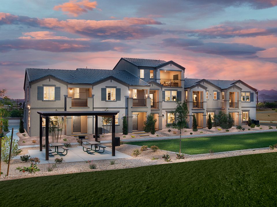 Juniper Trails in Henderson, NV offers gated townhome living with five floorplans, mountain views, and community amenities such as a pool, BBQ area, and dog park.