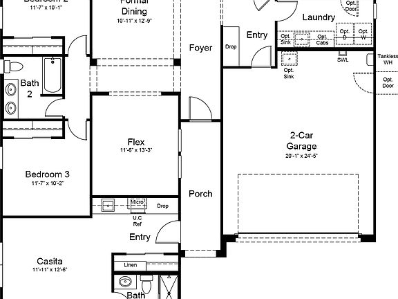 Private casitaThree-car garageFlexible flex roomSeparate formal dining roomOpen casual diningConvenient powder roomThree bedrooms