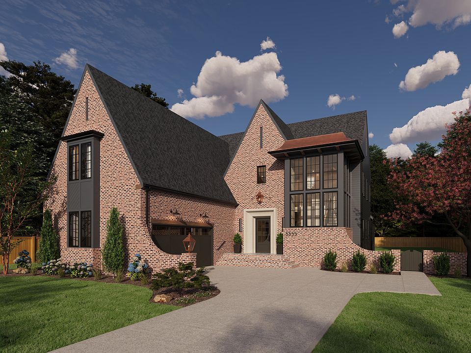 The exterior blends classic brick, steep gables, and clean contemporary accents for a timeless first impression. Inside, the floor plan is intentional and fluid, with natural sightlines and defined spaces that support both everyday living and entertaining.