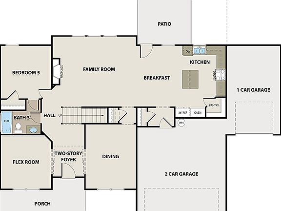 Guest suite on mainFamily room with fireplaceTwo-story foyerKitchen with breakfast area