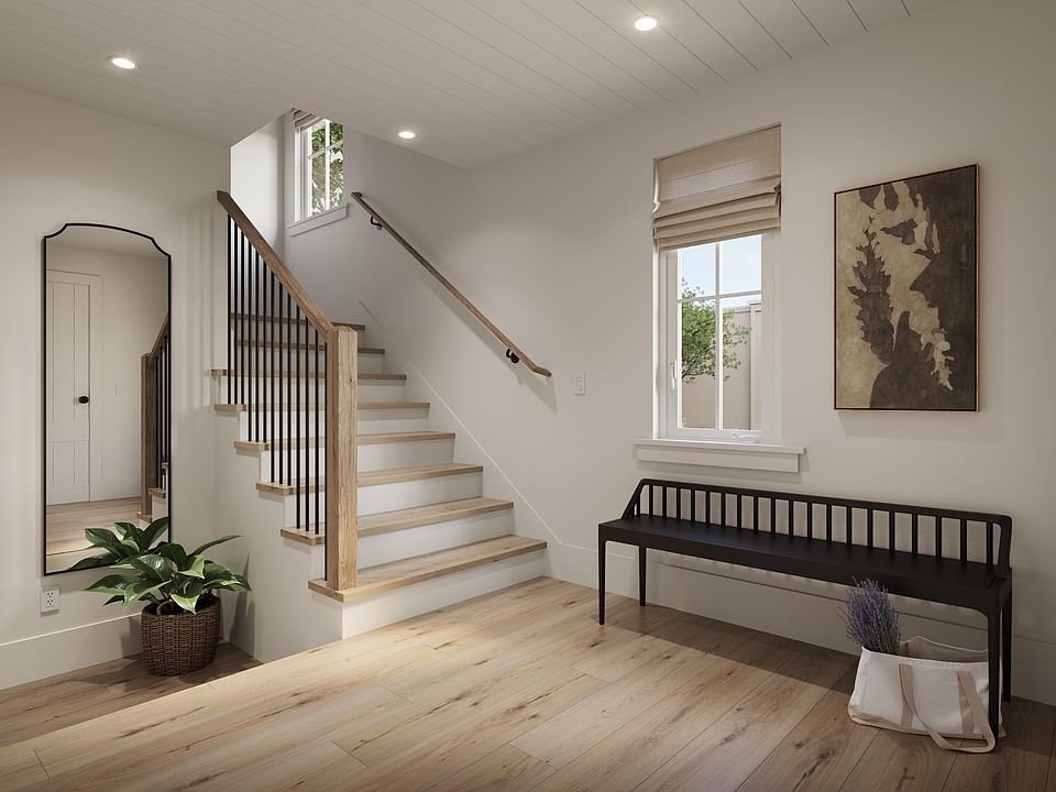 Inside the homes, spacious, efficient layouts offer plenty of storage, ground floor bedroom suites, office nooks, and three bedrooms together on the upper floor. A curated blend of included features such as solar, hardwood floors, Bosch® appliances, and white painted, custom cabinetry provide more function and beauty at no additional cost - a step above anything else in their class.