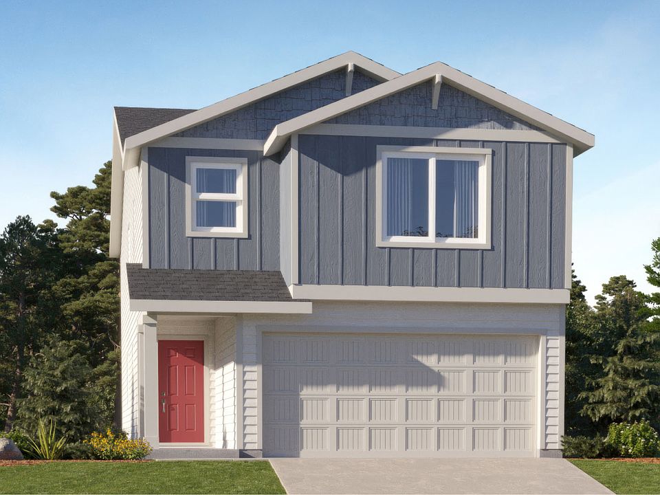 On the first floor of this two-story home, a contemporary open-concept design joins the main living area with an outdoor patio for seamless gathering and entertaining. A versatile loft area, three secondary bedrooms and the comfortable owner's suite make up the second floor. Rounding out the home is a two-bay garage for versatile storage room.