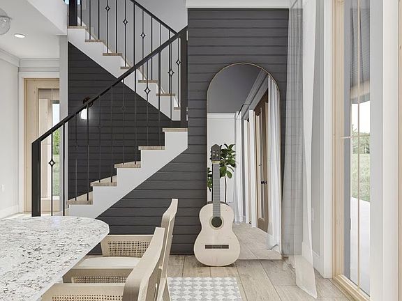 At its heart stands the Arlington Heights Barndominium, a showcase of style and function. Its dark board-and-batten siding, wood accents, and wrap-around porch create a warm welcome. Inside, a soaring great room features a fireplace with built-in seating. The gourmet kitchen includes a large island, walk-in pantry, and home office nearby. A formal dining room opens to the rear porch, perfect for entertaining. The main-floor primary suite offers dual vanities, a spa-like wet room, a soaking tub, and a walk-in closet with laundry access. Upstairs, three spacious bedrooms each include walk-in closets and a loft overlooking the great room. The oversized 3-car garage boasts 14' ceilings and an RV door, ideal for vehicles and equipment. Seize this rare opportunity—schedule your private tour today!