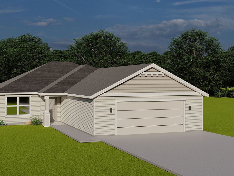 Modern elegance meets functional design in the 1696 plan. The spacious great room connects seamlessly to a contemporary kitchen and dining area, creating the perfect space for family gatherings and entertaining. The primary suite is a private oasis, featuring a stunning en-suite bathroom and a walk-in closet. Two additional bedrooms, located near a shared bathroom, ensure comfort and privacy for all. Thoughtfully crafted, this home elevates everyday living with refined style.