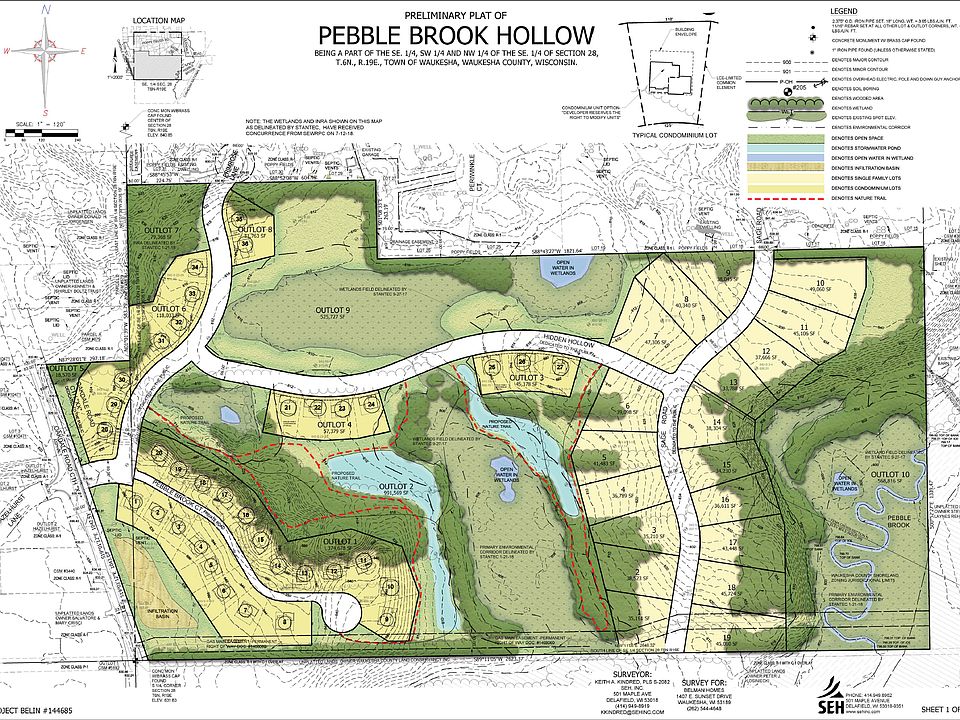Over 50 acres of natural open space with views of trees, wetlands, natural areas and wildlife. Pebble Brook Hollow is located only 4.5 miles from I-43 and 7 miles from I-94 in super low tax Village of Waukesha.