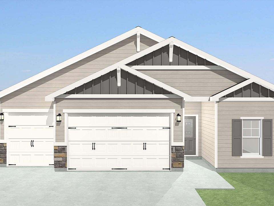 Welcome to the Spruce Mountain Floor Plan. This inviting single-level home offers a total of four spacious bedrooms and three full bathrooms designed for modern comfort and convenience. The primary suite includes a walk-in closet, while the additional bedrooms provide ample space for family or guests. The kitchen features a large granite top island and walk-in pantry, creating the perfect setup for cooking and entertaining as it seamlessly flows into the living room.