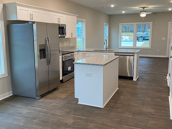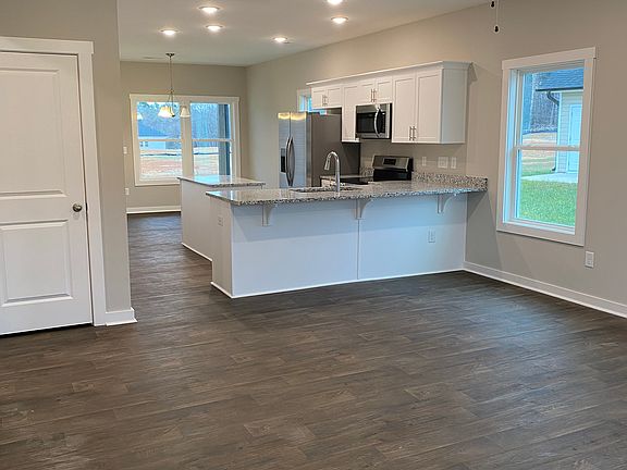 Beautiful 3 bedrooms; 2 bathrooms; 1 story home. This home welcomes you with a rocking chair front porch. This home has an open floor plan and features an open kitchen in between the dining room and great room creating an open flow from the front to the back of the home. The kitchen has granite countertops, shaker style cabinets, a cooking island, a pantry and Stainless-Steel appliances plus a refrigerator so you can live in your home on day 1. The Primary bedroom has a walk-in closet and an incredible ensuite bathroom containing dual vanities (Quartz countertops), a separate shower and a garden tub. A laundry area, two additional bedrooms and a second full bath complete this home. Make this home yours today!!***Interior Pictures are from a previously built Elkwood plan. Actual home may vary from pictures***