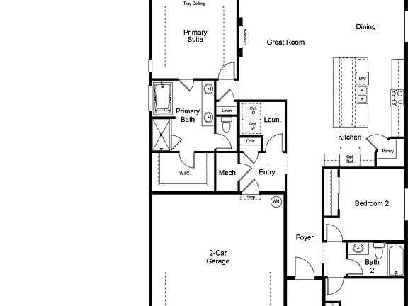Step into a space where thoughtful design meets everyday ease. This 1-story home features 3 bedrooms, 2 bathrooms, a 2-car garage and 1,661 square feet of open-concept living space. Just through the foyer, find a spacious great room that connects seamlessly to a kitchen with an island, a dining area and a covered patio-perfect for everything from quiet mornings to lively gatherings. 2 bedrooms and 1 bathroom offer plenty of space for family, guests or a home office, while a laundry room and entry off the garage add everyday convenience. Tucked away in its own corner of the home, the private primary suite features a spa-like bathroom and walk-in closet, creating a peaceful retreat to unwind and recharge. Plus, you have options! Choose a 3-car garage for extra space.