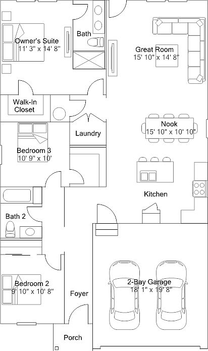 This new three-bedroom home provides convenient single-story living. Two bedrooms boast a private location off the foyer, near a spacious and flexible open-concept floorplan shared between the kitchen, dining nook and Great Room. Nestled into a private rear corner is the lavish owner's suite, complete with a full bathroom and walk-in closet.
