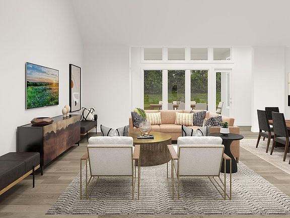 The Bellhaven blends classic design and modern convenience in a gorgeous single-story layout. From the welcoming foyer, the great room and casual dining area open under a cathedral ceiling and flow to a large covered patio ideal for indoor-outdoor living. Nearby, the gourmet kitchen features a center island with breakfast bar, L-shaped counter space, and a walk-in pantry. The primary bedroom suite features a cathedral ceiling, a spacious walk-in closet, and a spa-inspired bath with dual vanities, a soaking tub, a luxe shower with seat, and a private water closet. Three secondary bedrooms two sharing a bath and one with access to a hall bath offer room for family and guests. Additional highlights include a rear flex room, central media room, everyday entry, and laundry space.
