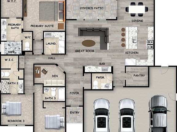 - Attached garage spaces: 3