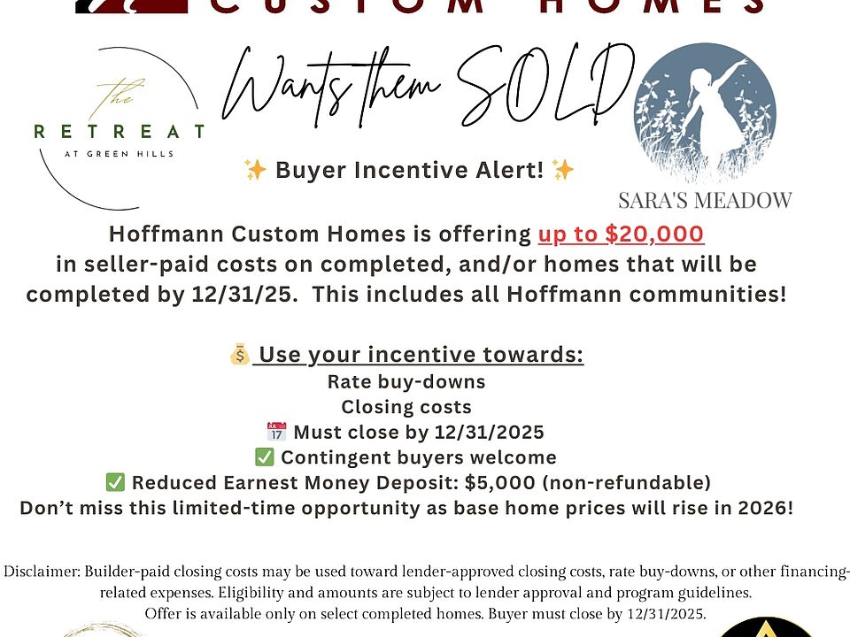 Discover a stunning new community by Hoffmann Custom Homes, nestled among rolling hills and protected greenspace. This exceptional neighborhood offers coveted cul-de-sac lots and an abundance of walk-out options. Choose from a variety of thoughtfully designed floor plans, including Ranch, Reverse 1.5-story, 2-story, and 1.5-story homes. Come explore and experience the uniqueness of this remarkable community!