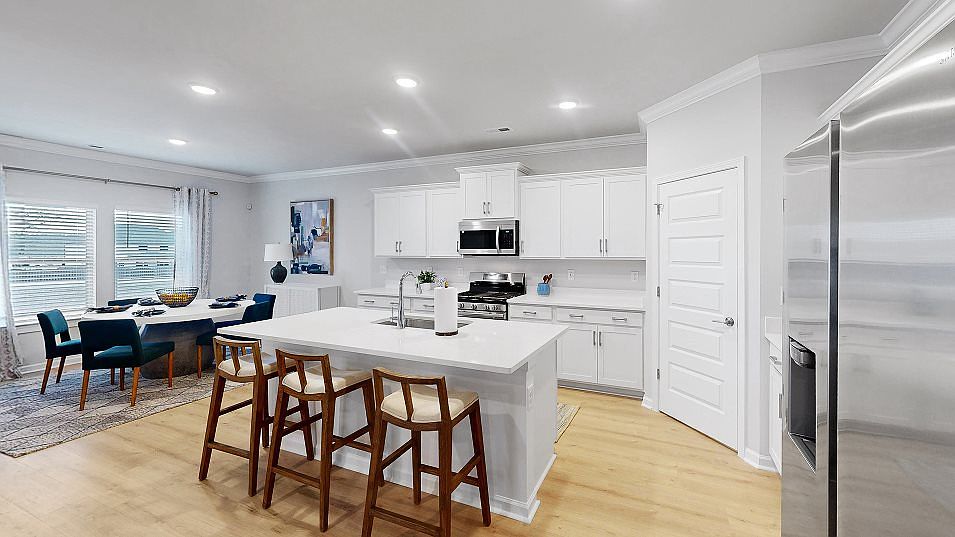 This single-story home enjoys a modern layout with room to grow. An inviting open-concept floorplan seamlessly connects the kitchen with the living and dining areas, with a covered porch easily accessible for seamless outdoor transitions. Four bedrooms surround the main living area, including the luxe owner's suite which enjoys a private corner at the back of the home for optimal privacy and comfort. A three-car garage completes the home.