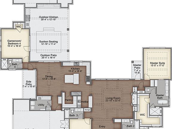 With 3,390 sq. ft. of interior space and 5,770 sq. ft. under roof, The Lola offers expansive patios and oversized garage space. A pool may be added but is not included in the price.