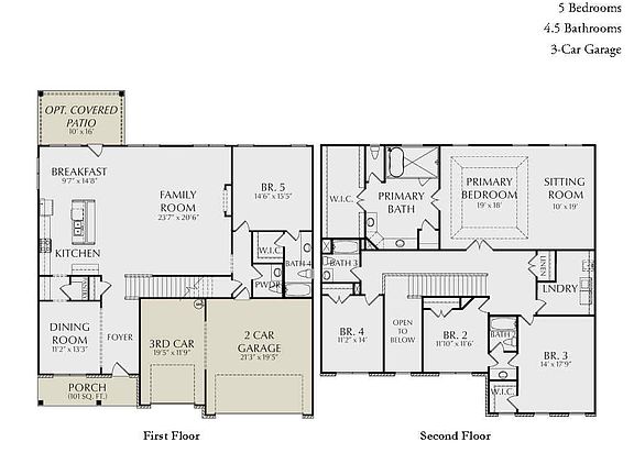 The Hope is a beautifully designed two-story home offering approximately 3,824 square feet with 5 bedrooms, 4.5 bathrooms, and a 3-car garage, providing the perfect balance of open living and private retreat spaces.
